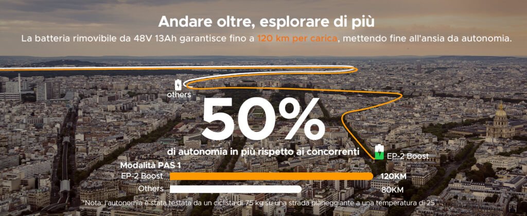 EP-2 Boost, l’e-bike alimentata a boost con coppia intelligente 50Nm. 250W EU – Standard Output