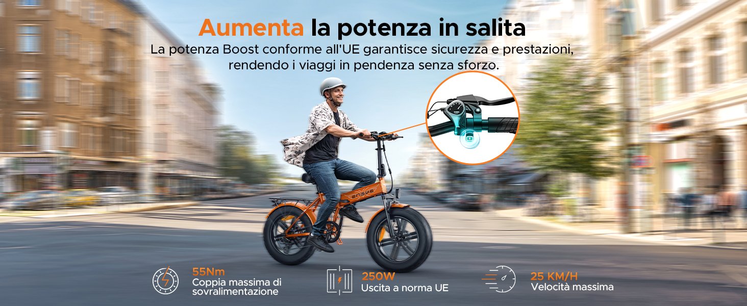 Con la tecnologia Boost conforme alle normative EU, sicurezza e prestazioni sono garantite, rendendo ogni pendenza un gioco da ragazzi.