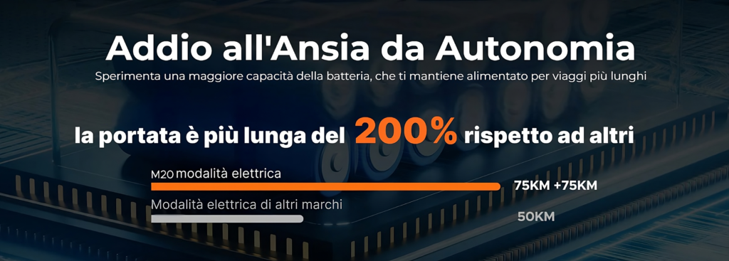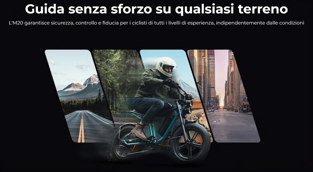 “Dotato di pneumatici larghi da 20 x 4,0 pollici con una struttura a tre strati (gomma importata, intreccio in nano carbonio e camera d’aria in gomma butilica), l’M20 garantisce una guida fluida e stabile su qualsiasi superficie”