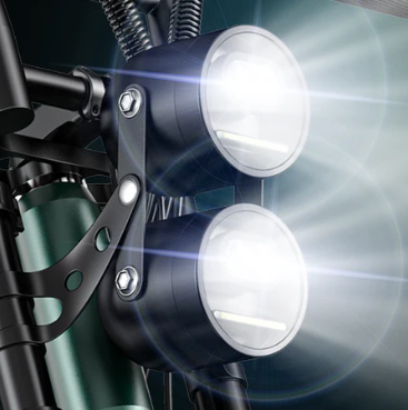 “Una luce LED anteriore ad alta luminosità illumina il percorso, garantendo visibilità e sicurezza anche in condizioni di scarsa illuminazione. “