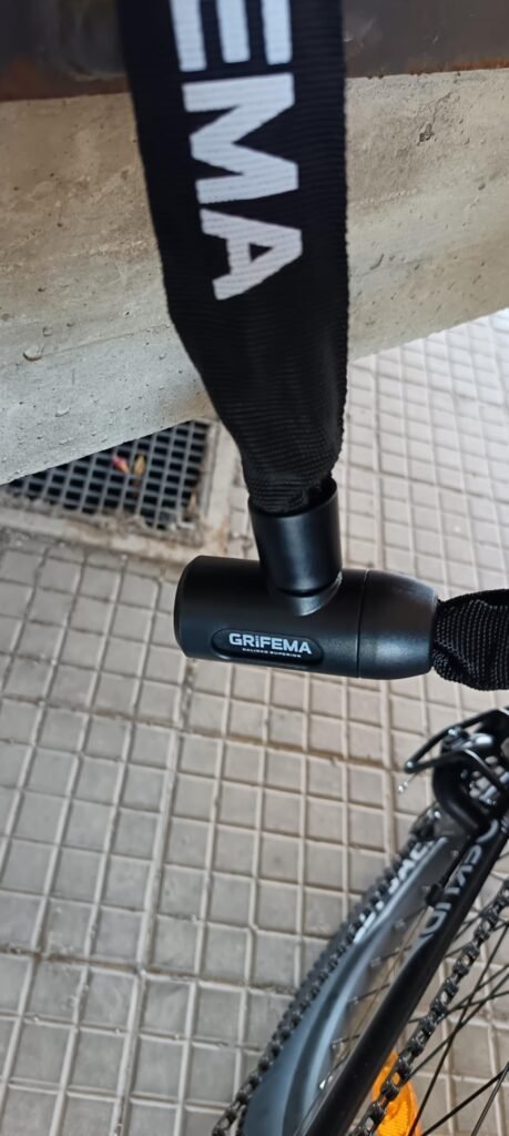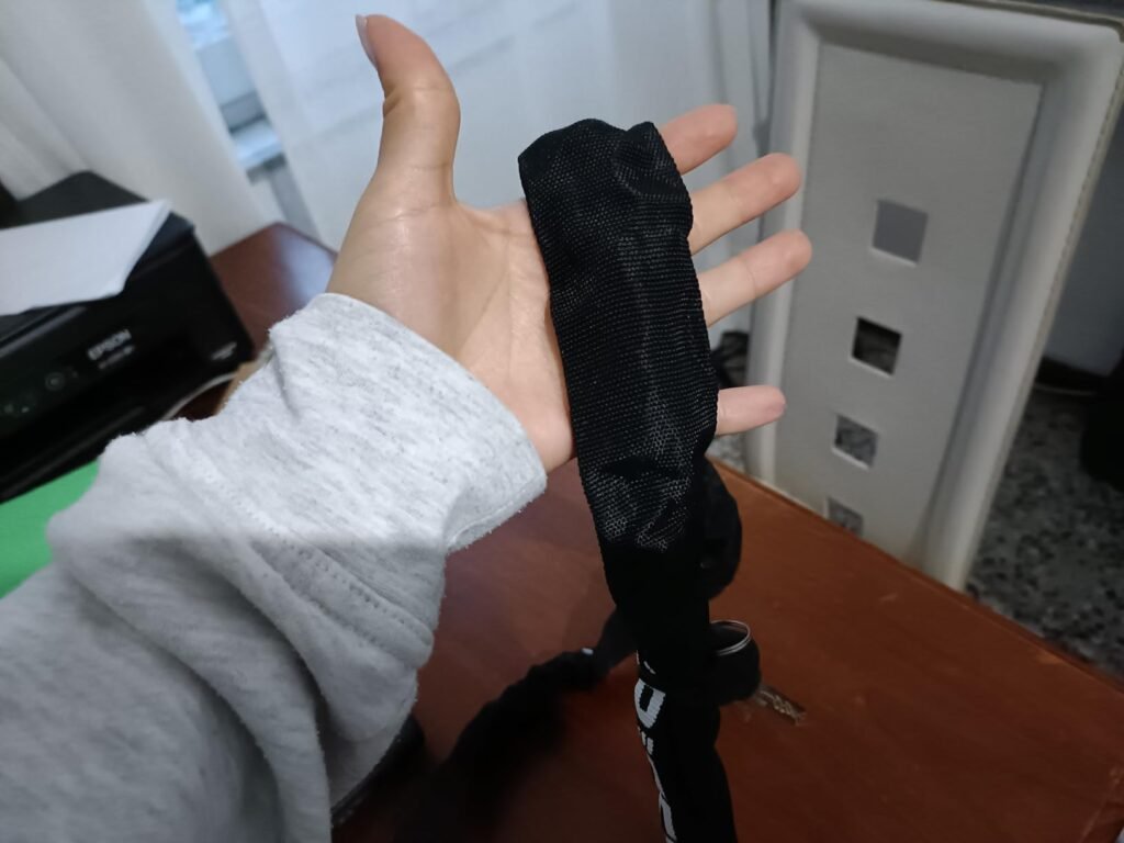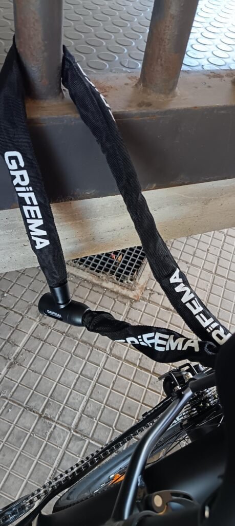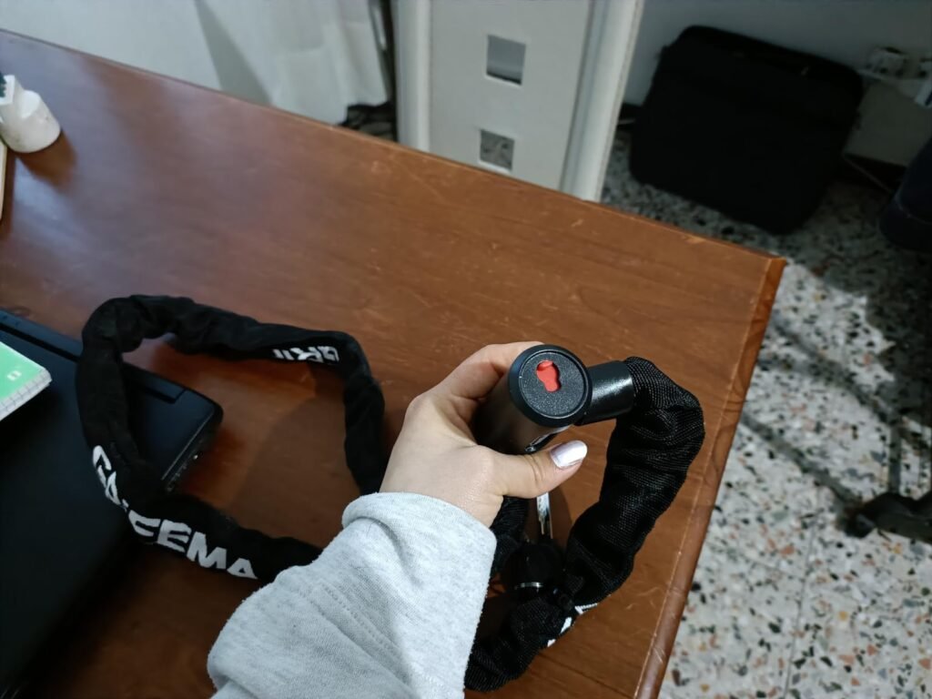 davvero molto pratico e ben fatto. La lunghezza è ideale perché permette di legare la bici in diversi punti senza difficoltà, offrendo più libertà di utilizzo rispetto ai modelli più corti. La catena appare robusta e resistente, mentre la guaina protettiva aiuta a non graffiare il telaio della bici.